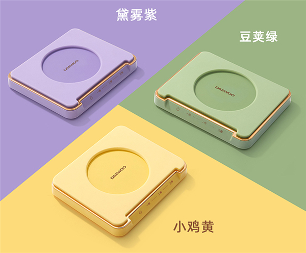 大宇恒温杯垫有黛雾紫、豆荚绿、小鸡黄三种颜色可供选择,整体尺寸为151*127*22mm,重量约0.3KG,纤薄小巧的身材可以随时收纳到行李中,哪怕出差旅游时都可以为自己带来温暖的饮品和食物。