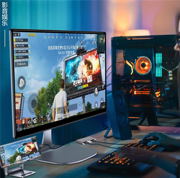 来说说接口部分,现在流行移动办公,如果有一台移动的iPad、Windows、Mac设备的话,可以连接雕塑家M24Q作为拓展屏幕,而且它同样支持手机连接,玩游戏的话可以投屏到显示器,显示内容更多,玩起来也更加舒适。