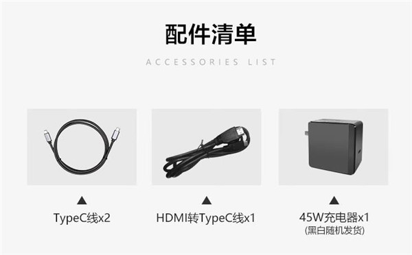 机身背板更是采用了航空级铝镁合金材料,保证了机身强度的同时,不易被划伤、磕碰、并且将很好的控制重量,让显示器显得十分轻薄。配件方面是45W充电器一个Type-C数据线2个,HDMI转Type-C接口1根。显示器还有独立的显示器检验报告。