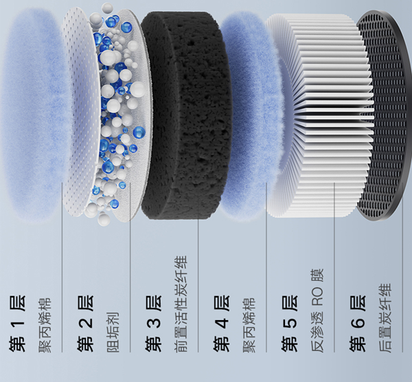 为了使用更加方便,米家台式净饮机乐享版,采用RO反渗透技术,可以自由选择加纯净水或者自来水,而6层的深层过滤技术,净化后的水母婴可以放心直饮,每根滤芯大概可以净化2000L自来水,按照每天净化1.5L的纯净水,大概可以使用1年时间,成本1天1元左右。