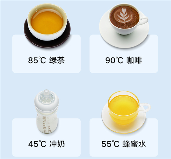 采用厚膜加热技术,可实现3秒速热,想要几度的水,一键即可获取。