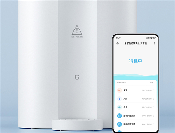 米家台式净饮机乐享版采用厚膜加热技术,3秒即热,可一键实现净水和加热出水,连接米家App自带“常温”“冲奶”“开水”模式,40°C-95°C温度区间内支持1°C精细调温,可一键调至合适水温,十分方便。