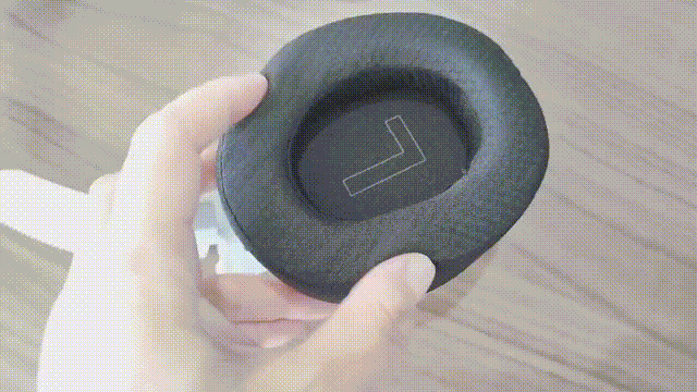 耳罩内侧面就是黑色立体大耳垫,它采用超细纤维网状材质,透气不闷耳朵,轻轻按压也非常柔软,在佩戴时亲肤舒适,不怕夏天贴肤出汗。上面还隐藏着左右耳标识,小白上手不容易佩戴错误。