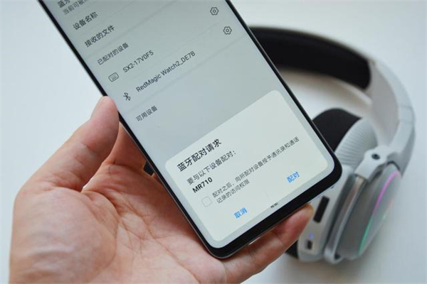 第二种蓝牙无线连接。如果出门忘记带这个无线连接配件,直接打开手机蓝牙开关,然后就能搜索到这款双飞燕MR710无线游戏耳机,直接配对即可连接上。随便播放一条手机中的音频文件,耳机里就立马出现了声音,说明这也简单轻松的完成了连接。这种在外出通勤或者进行户外活动时体验很方便。