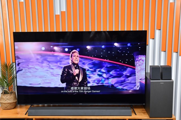 飞利浦B8967的5.1.2声道杜比全景声音响系统由前置声道、主音箱顶部的左右天空声道、左右环绕音箱以及独立的低音炮所组成。这套声学系统结合了杜比全景声音频解码技术和飞利浦回音环绕技术,可以呈现出360度的环绕式包围声场。在这种声场空间内,配合电视上的画面你将有非常强的沉浸感。