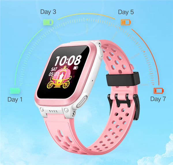 通话方面则也同样是支持4G网络,并且不仅支持语音电话,还搭载有摄像头,支持视频通话,还能使用微信,年龄稍大会打字的孩子可以通过微信和家长建立微信群,建立更强的沟通联系;续航方面,搭载了900mAh的大容量电池,待机可长达8天,日常使用可续航长达5天。因为搭载有摄像头,孩子还可以用来拍照、录视频,同样支持上课禁用功能和支持日常防水。