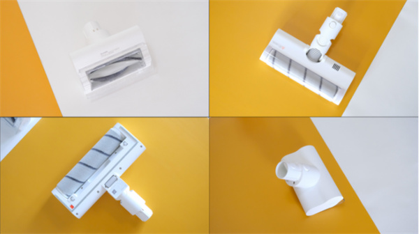 米家无线吸尘器2一共有二合一扁吸头、电动除螨刷、软绒地刷共3个刷头,分别针对不同的场景所设计,其中二合一扁吸头可以针对墙角、沙发缝隙里面进行清理,电动除螨刷主要是针对床上除螨,软绒地刷主要是针对拖地、置物架等。