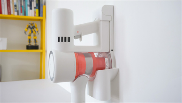 此外,米家无线吸尘器2还采用了壁挂式充电架,可以实现充电、收纳二合一功能,十分方便。