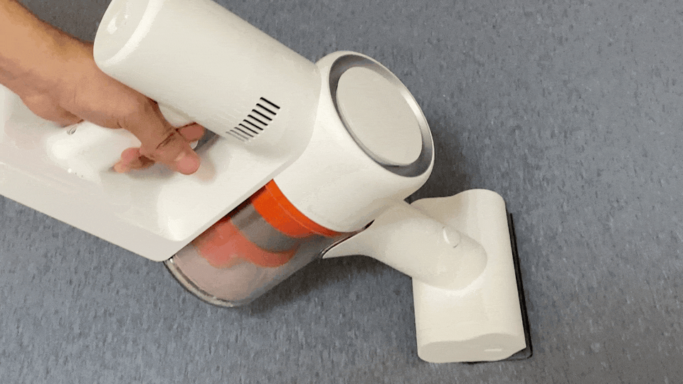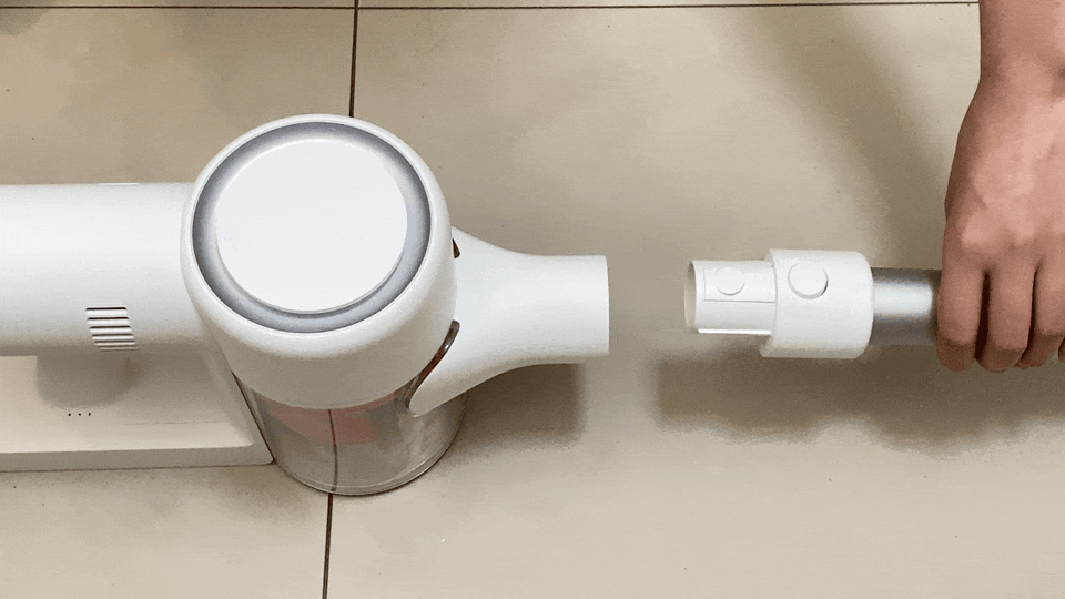 米家无线吸尘器2配件非常多,但是安装都非常简单,每个连接处有防呆卡扣,直接对准装上即可。更换的话只需要按下卡扣前方的按钮即可轻松取下更换。