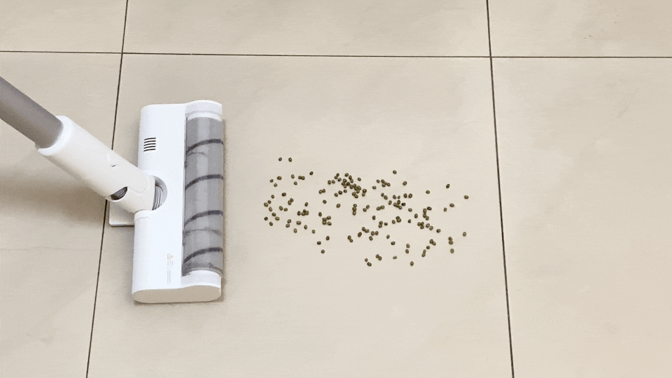 其次咱们清扫绿豆,绿豆由于体积小质量重,一般的无线吸尘器吸力不足根本就吸不起来,这对于大多无线吸尘器都是一个挑战,但是米家无线吸尘器2轻轻松松就可以全部吸干净。