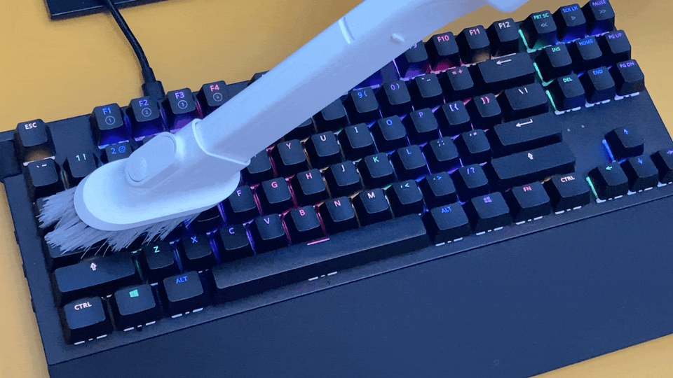 其中一个我认为特别爽的就是清理键盘的灰,键盘缝隙总是会藏满灰尘,对于一个强迫症来说怎么看怎么难受,但是只要使用米家无线吸尘器2搭配二合一扁刷头即可轻松吸的干干净净。