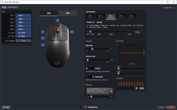 SteelSeries GG软件,包含了Engine驱动程序,以及Moments等一系列功能。在Engine中,可以对鼠标的参数加以设定,包括CPI、CPI档位数量、按键自定义、宏指令、省电休眠时间、角度捕捉、加减速、轮询率等等,全面且直观。