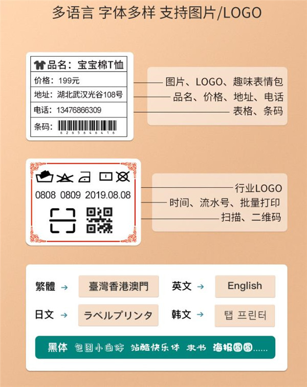进入到软件界面,整个操作一目了然。可以在广场直接使用大家分享的打印模板,如果没有自己满意的,也可以进入到编辑界面。这里也有不少官方提供的现成模板。也可以自己设计,在标签上可以自定义语言,文字样式,同时还可以插入时间,二维码,图片,边框等内容,自定义化的程度非常高。内容定制完成之后,这里可以选择打印的数量,需要批量打印一步搞定。