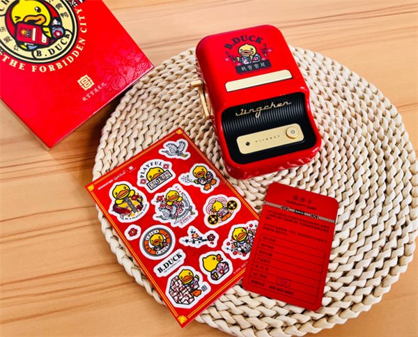 选择精臣B21智能标签打印机,看重的不仅仅是一个简单的标签机而已,还看重的是它的设计和颜值。它的外观元素使用了三方联名,分别是小黄鸭X故宫文化NIIMBOT精臣。造型给人的第一感觉就是复古,以及精致。就像是一台复古的打印机mini款,如果不说它的功能,相信很多人都会觉得它是一个不错的艺术摆件。