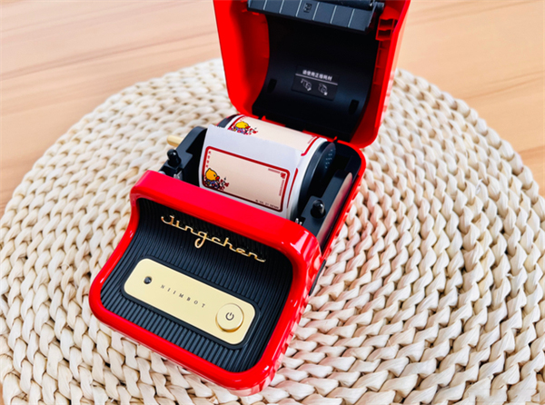 先来介绍一下这款标签机的工作原理,因为是热敏打印技术,所以并不需要油墨碳带,只要将标签纸放进去就能直接打印了。这种设计的话,能够节省更多的耗材成本。