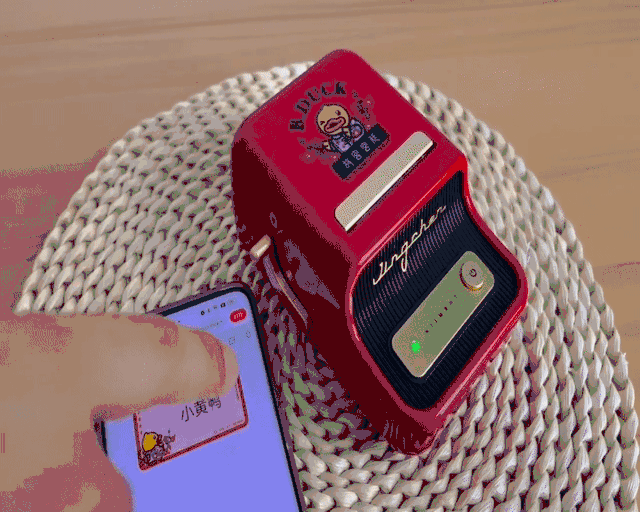 打开包装盒,产品的配件比较简单,包括标签机本身,一根充电的type-c线,两卷带有小黄鸭元素的打印纸,以及一张小黄鸭贴纸。