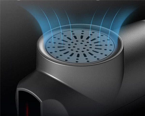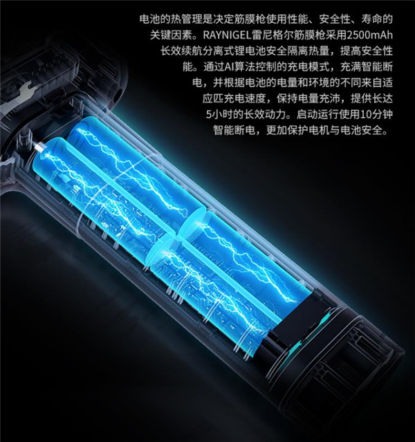 机头顶部的发散式散热孔:据了解,雷尼格尔的这款筋膜枪采用了Micro-Electronic散热技术,可以将热量快速散发至密集的散热孔流体中。以确保筋膜枪始终能够高效稳定的运行。