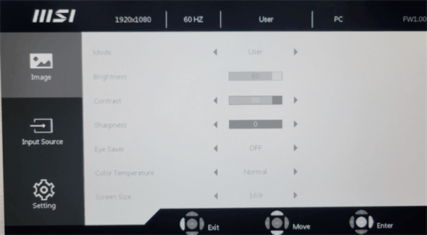 背面最左侧有一个银色按钮,笔者一开始以为这是一个螺丝,实际是桌面OSD菜单的5维导航按键 ,用这一个按钮即可调节整个OSD菜单 。