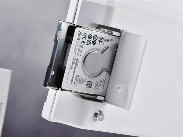 导航按键上方的是一个2.5英寸硬盘位,拆装简单,自动识别SATA或者PCIe协议,这台主机中已经提供了一个1TB机械硬盘。
