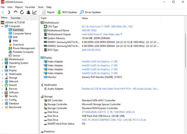 因为主要面向商务办公,微星Modern AM272P 一体机没有独显,采用酷睿i7-1260P 自带的Xe核显,搭载双8GB内存,256GB固态做系统盘,提高系统加载速度。还剩下1TB机械硬盘日用,有大容量需求可以随时更换,前面也提到了款一体机硬盘更换方便。无线网卡为最新的WIFI 6E,集成蓝牙5.2。