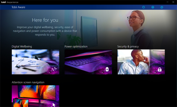 另一款软件名为TOBII AWARE,这是一款针对隐私设计的软件,与微星Modern AM272P 一体机顶部摄像头结合实现隐私保护。