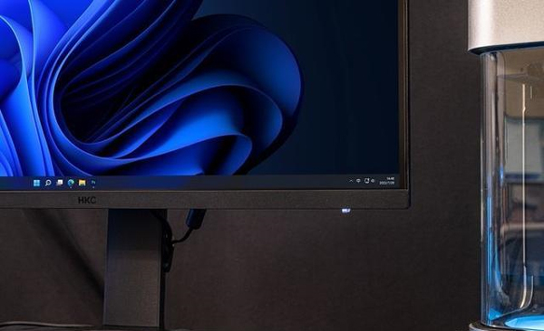正面HKC VG273U沿用了目前最主流的三边窄边款设计,配合上一块27英寸的4K大屏,整体的视觉冲击力还是十分给力的。