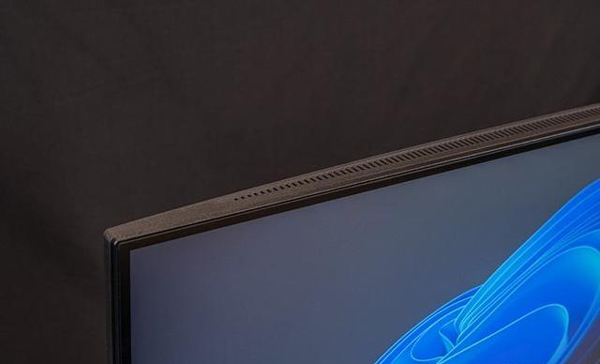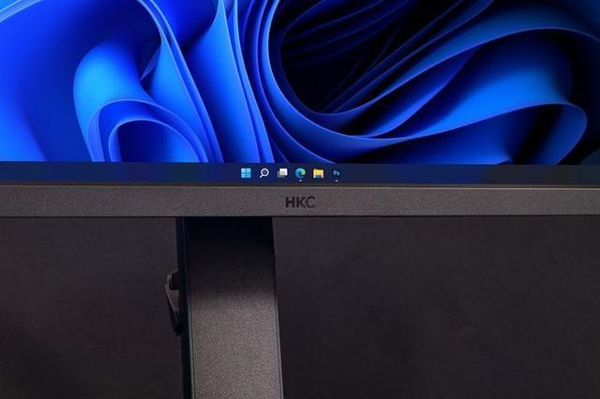 屏幕的下边框则印有HKC的品牌logo,颜色也是做了黑色处理,不会破坏整体的一体性。屏幕的上边框则加入了散热孔的设计,辅助内部散热。