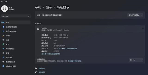 对于这台售价不到3000元的4K 144Hz显示器,显然大家更为关注的显然是面板的素质表现。HKC VG273U采用了一款4K分辨率、144Hz刷新率、16:9的IPS面板,通过满带宽的HDMI2.1接口连接到PC上,可以开启4K 144Hz 10bit全范围RGB输出。