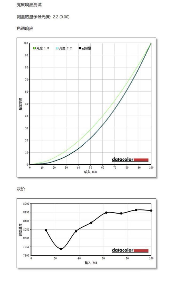 色调响应测试中,HKC VG273U的色调曲线基本和伽马2.2曲线重合。色温上,HKC VG273U整体色温偏暖,色温大概为7950K-8150K,整体的观感还是比较舒适的。