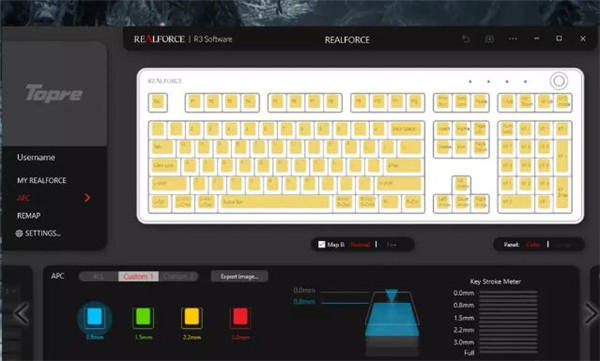 接下来聊聊燃风的经典功能APC,也就是Adjustable Actuation Point的意思,每个按键有0.8mm、1.5mm、2.2mm、3mm这四档触发深度。