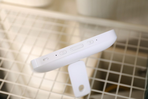 这次的摄像头被安置在了右上角,依旧采用的是可遮盖设计,这样既能保护隐私,也能随手开启进行视频通话,除此之外,顶部还有音量键、静音键和快捷键三个按键,功能和它们的名字一样,简单的三个按钮就可以完成基本操作,当然大部分时候我们还是主要依靠语音操作,但按键的设计更让人有安心感。
