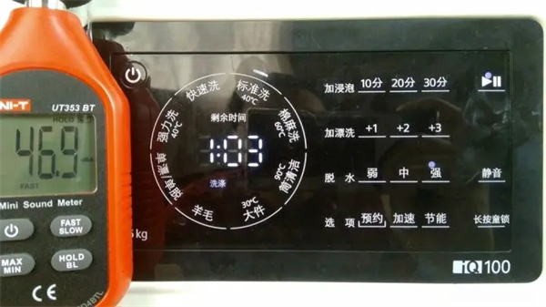 西门子先上场,用日常用的模式,为了对比一下脱水能力和噪声其他默认,去掉节能,洗涤时间少了一半。环境噪声在46~50dB之间波动,平约48dB。