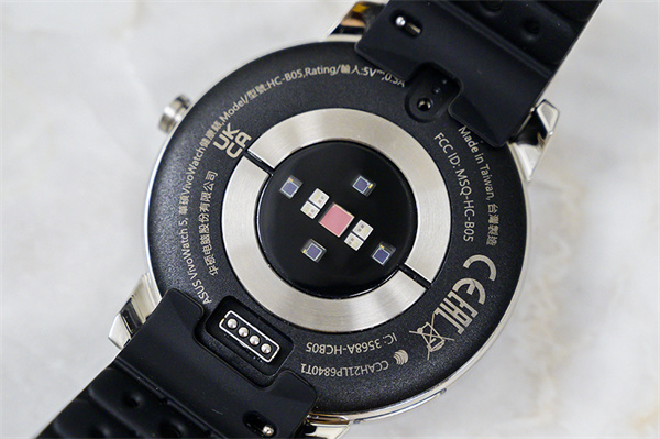 但仔细看去,就会发现,相比市面上的智能手表,它的独特之处了——华硕VivoWatch 5或许是目前市面上传感器最多的智能手表了。在手表背部,设置了光学心率传感器、温度传感器,以及微电传感器,用以测量各项健康数据。