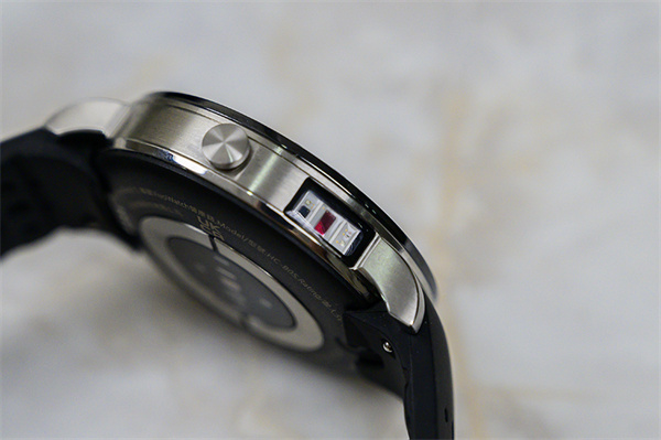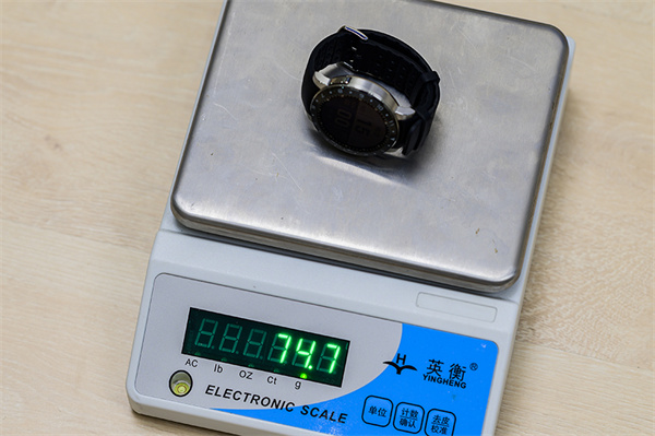 我们再看手表其他的外观细节,在到硅胶表带的情况下,手表重量大约74.7g,厚度大约13.5mm,整体也算是目前这类型智能手表的正常水准。