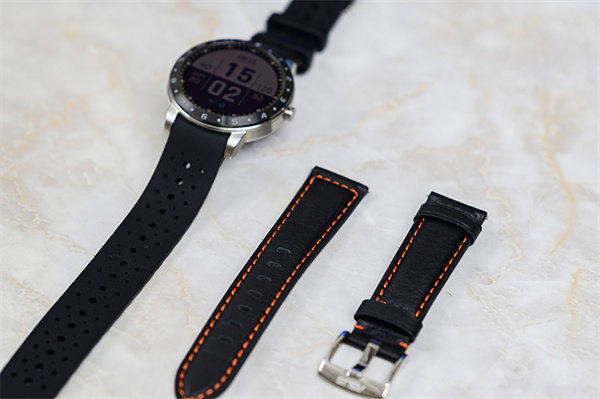 手表标配了硅胶和皮质两种表带,以满足用户在不同场景的佩戴需求。并且无论是硅胶表带,还是皮质表带,材质都比较细腻,佩戴舒适度还是不错的。