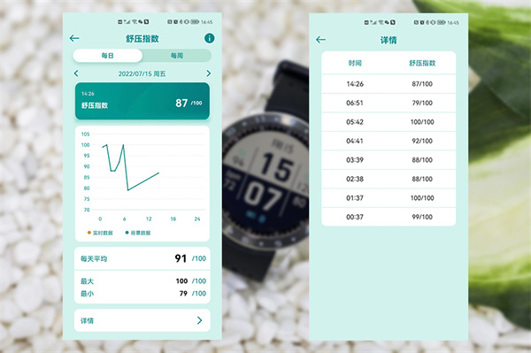 同时,根据记录的多项数据,华硕还给出了一个舒压指数,你可以关注这一数值,在感受到压力较大的时候,适当的调整。