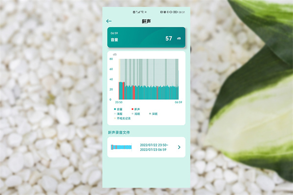 在睡眠记录里面,结合手机还能记录夜间的鼾声情况,这对于打鼾的朋友来说,也是非常有用的一个功能,可以时刻关注自己的打鼾情况。