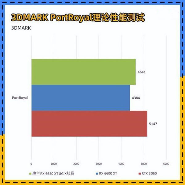 在整卡功耗对比中,三款显卡相差不大,我们主要看RX 6650 XT和RTX 3060,根据3DMARK的理论跑分来看,RX 6650 XT算上光追部分的减分,综合提升30.6%,功耗整体提升23.5%。