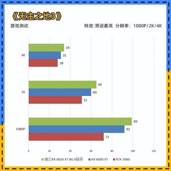 迪兰这款RX 6650 XT X战将无论是理论测试还是游戏成绩,均超过了RTX 3060,并且在2K分辨率下也能达到60帧以上的流畅效果。以这张显卡的性能来说,正常使用3-5年完全没有问题,即便是未来游戏性能要求提升,大不了就按照一张1080p入门级显卡使用,依然能流畅运行不少3A大作。