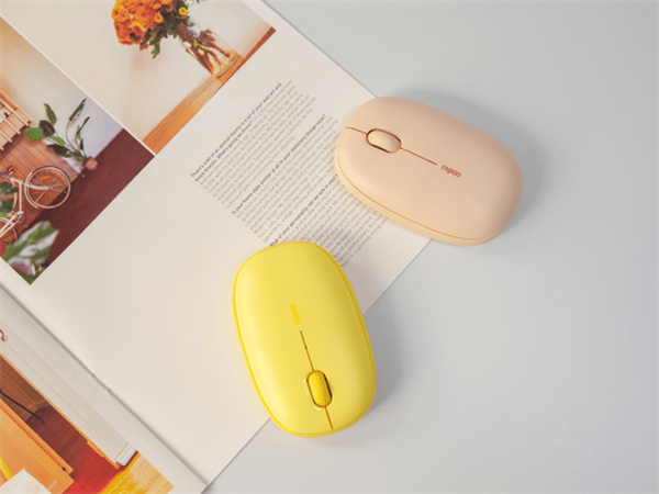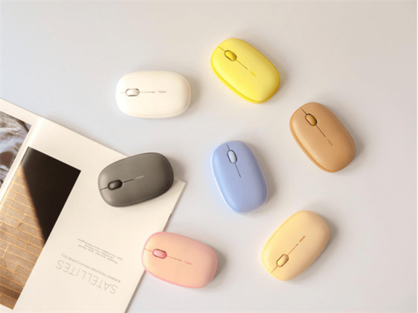 雷柏M650新增多款颜色,现在在售的一共有7款色彩外观,他们分别是蜜桃粉、咖啡棕、奶茶色、芝麻黑、香芋紫、柠檬黄和奶油白。外观造型方面,鼠标采用了非常圆润的外观设计,看上去非常可爱。