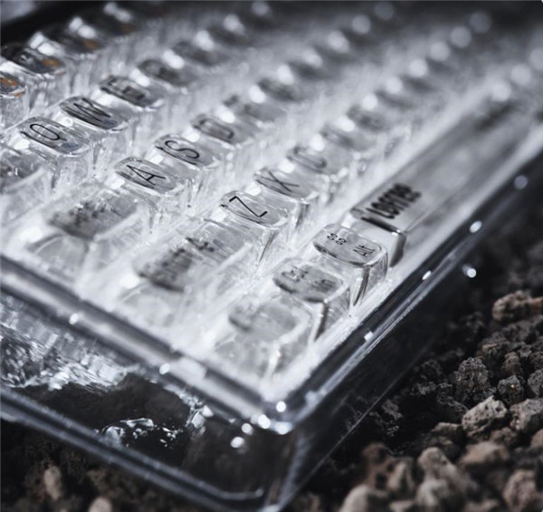 键帽的纯粹透感就像是一个个冰块争气排列在键盘上一样,那是一种干净,更是一种纯粹。简简单单,干干净净。而且它的键帽在不同关的照射下,会呈现出一种如同水晶般的光泽,精致感铺面而生。
