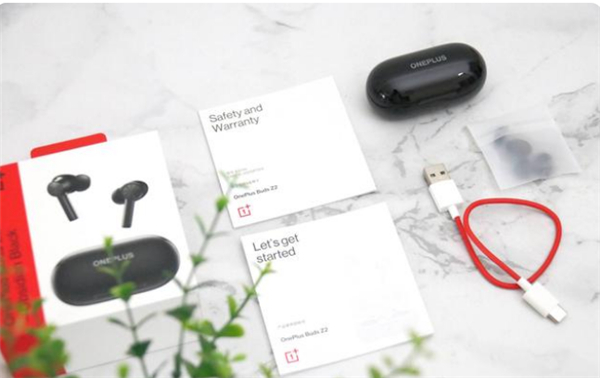 一加Buds Z2无线耳机全家福:充电盒*1、耳机1对、type-c电源线*1、硅胶耳帽3对、说明书*1、保修卡*1等。