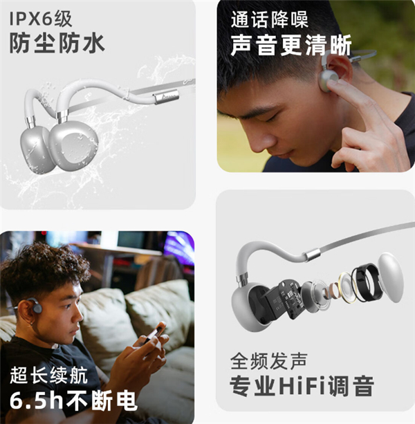 耳机本身是IPX6级防护性能,防汗防雨防喷溅,日常的运动完全不慌,所以作为运动耳机也是完全可以胜任的,不会因为晃动而松动、掉落。蓝牙是5.3协议,延迟更低、抗干扰更强,功耗也更低。