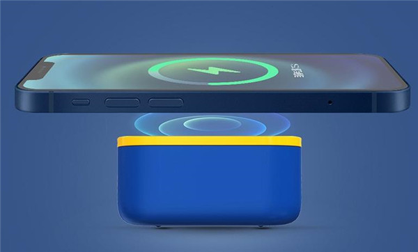 桌面充表面光滑,触感不错。顶部左侧为积木凸点接口,右侧则是无线充电区域。