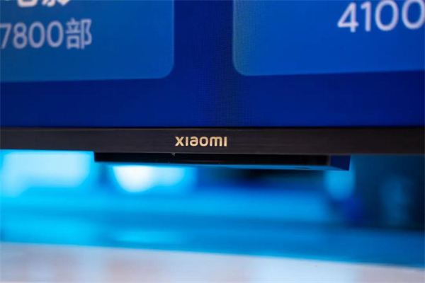 电视底部边框上印有 Xiaomi logo,并且该区域还隐藏有信号接收器、实体开关按键等部件。