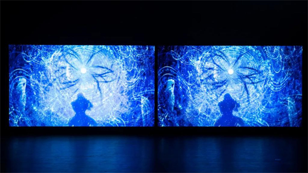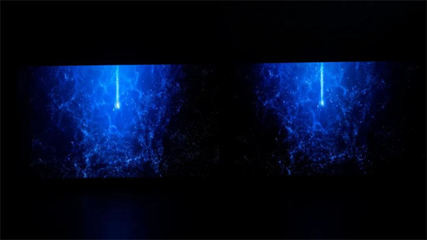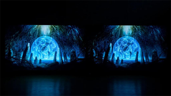 而在以黑色为背景色 / 环境色的场景中,拥有分区背光的小米电视 ES Pro 在高亮的白场与黑暗的黑场过渡明显对比度更高;没有分区背光的 Redmi 智能电视 X 2022 款在过渡处始终有一层淡淡的光晕。
