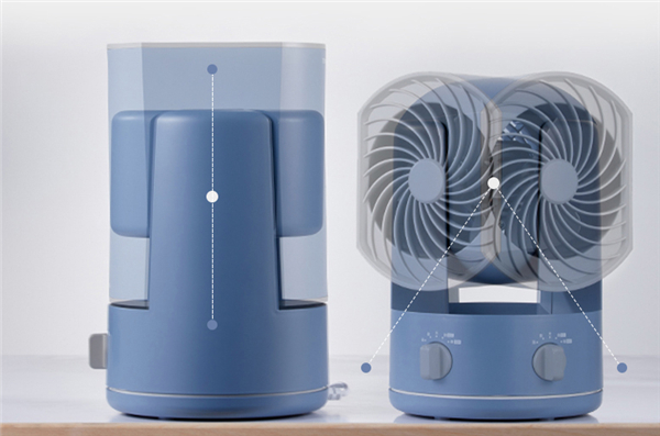 家奈迷你空气循环扇的扇叶采用了仿潜艇螺旋桨的设计。相比传统风扇,这种扇叶的曲率要更大,增大风量和送风距离的同时还能减小运行时的噪音。