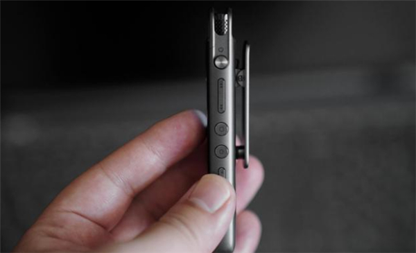 操控按键布置在机身左右两侧,左侧是录音键和模式切换开关,右侧则有比较多的按键。包括了电源键、快进/退键、确认键、返回键和音量调节按键。在刚上手使用的时候,就需要去学习和记住对应的按键功能,因为这里面快进退和音量调节都是长条状的,而确认和返回都是同样圆形的,需要稍加记忆区分。