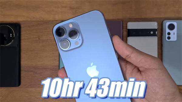 iPhone13Pro续航时间为10小时43分钟,排名第一。