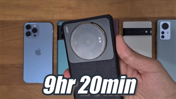 小米12SUltra续航时间为9小时20分钟,排名第二。